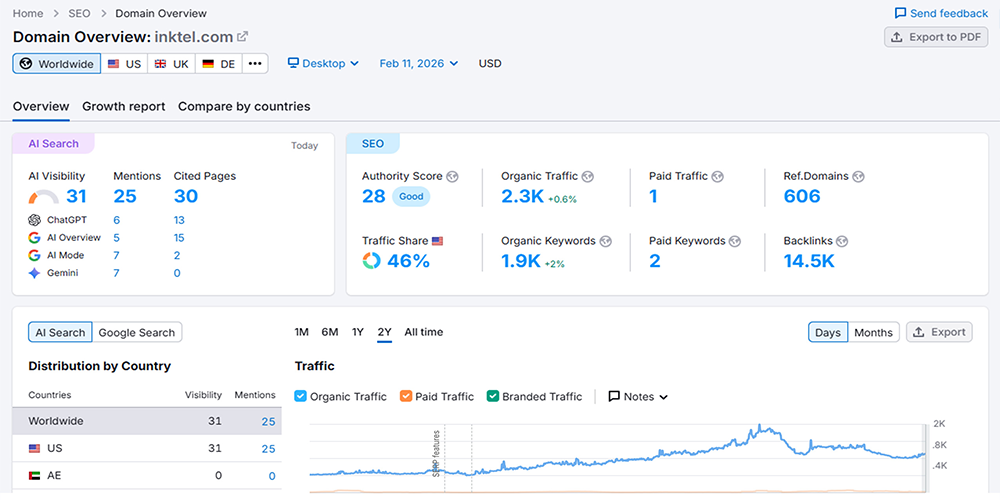 We also strengthened the backlink strategy, securing high-quality, authoritative links that reinforce Inktel’s credibility. By combining technical optimization, content enhancements, and link-building efforts, we significantly improved search performance, increased organic traffic, and positioned Inktel as a trusted leader in its sector.